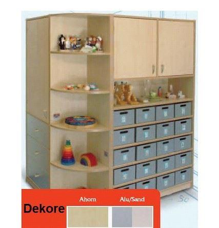 Die Abbildung unten zeigt das Ahorn Dekor mit Materialkästen und Schüben Alu, unsere Anbauwand Eckform 1 ist aber auch in folgenden Kombinationen lieferbar: