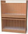 2. - Buche Dekor, 2-seitig geschlossen die "luftigere Variante", E1 Spanplatte an Kopf- und Fußende die Rückseite mit festen Gitterstäben, vorn Rollgitter hochschiebbar.