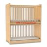 - Ausführung Buche Dekor, 3-seitig geschlossen, E1 Spanplatte an Kopf-, Fußende und Rückseite, vorn offen, mit Rollgitter hochschiebbar.