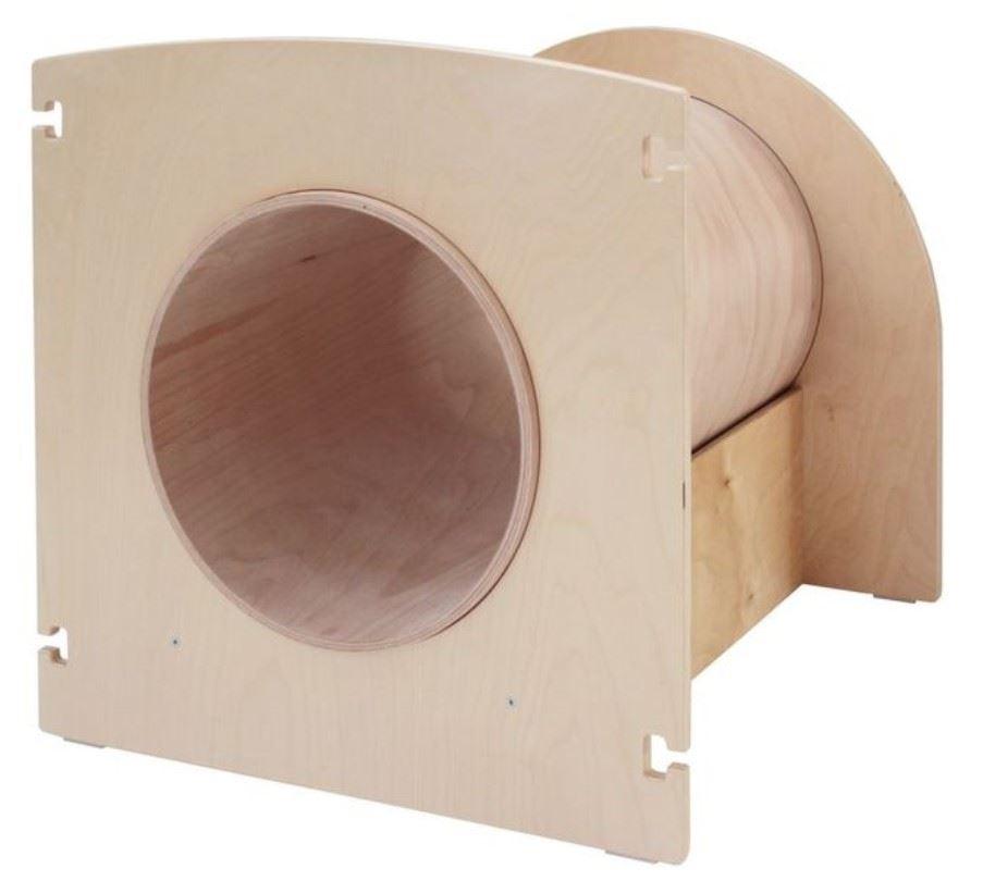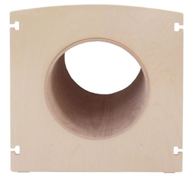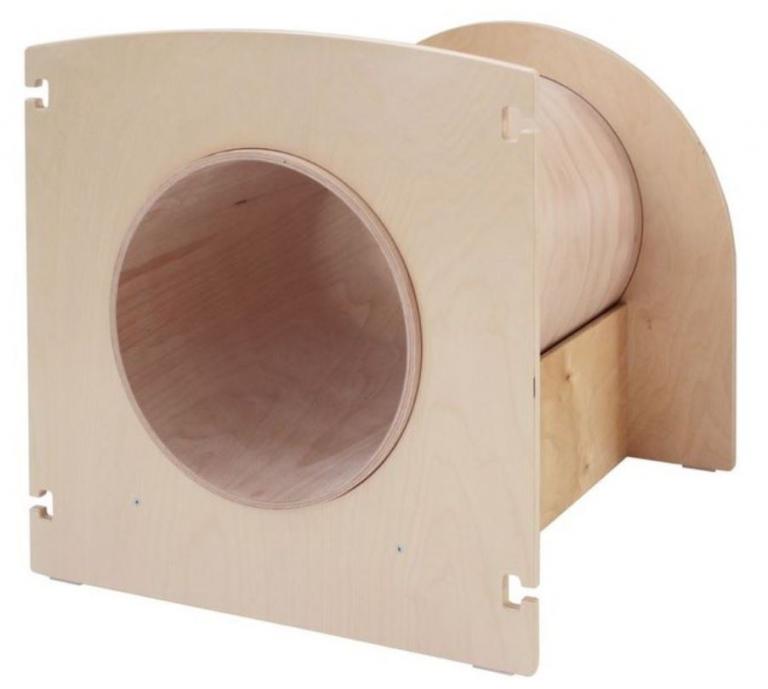 Dieser Raumteiler hat eine ca. 60 cm lange Röhre zum Durchkriechen. Der Einstieg in den Tunnel ist etwas erhöht und in der Röhre ist genügend Platz, um sicher zum Ausstieg zu gelangen.