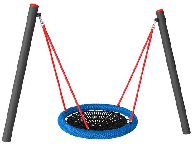 Die Mini-Vogelnestschaukel ist selbstverständlich wie ihre große Schwester TÜV geprüft, der Ø des MINI-Vogelnestes beträgt 90cm und verfügt über eine Zwei-Punkt Aufhängung, der gepolsterte blaue Seilring umschließt die Sitzfläche, die wie gewohnt aus einer Stahlseil-Gliedermatte gefertigt wurde!