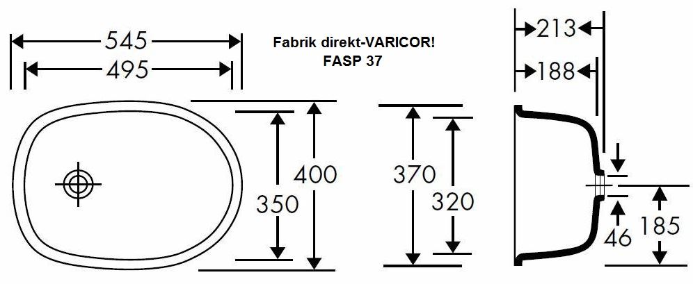 Babybadewanne FASP 37 (Auflagebecken) mit abgeschrägter Wannenrandkante zum Einbau von oben.