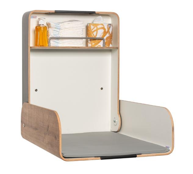 Der robuste Wandwickeltisch mit Klappenbremsen kann platzsparend und flexibel in jeder gewünschten Höhe angebracht werden. Erhältlich in vielen Design-Ausführungen passt er in jedes Interieur.