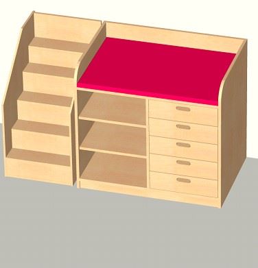 +feste Anstelltreppe für Wickelplatz (rechts oder links zu positionieren) das linke oder rechte Aufkantungsbrettchen - jetzt noch sichtbar auf der Skizze - fällt natürlich weg - B/H/T = 52 x 100 x 70 cm