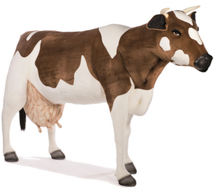 Lebensechtes Plüschtier, Kuh weiß-braun, Länge: ca. 237cm, Breite: ca. 76cm, Höhe: ca. 137cm
