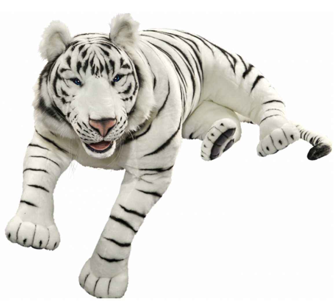 Weißer Tiger liegend, lebensechtes Plüschtier, Länge: ca. 150cm, Breite: ca. 65cm, Höhe: ca. 60cm