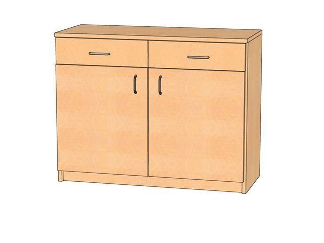 Praktisches und solides Sideboard, oder auch Anrichte genannt, aus deutscher Meisterwerkstatt im Standarddekor Buche mit chrom mattierten Segmentbogengriffen und aufschlagenden Türen. Dieses tolle Möbelstück wurde für Hotelerie, Jugendherbergen, Altenheime und natürlich auch für unsere verehrte Privatkundschaft entworfen und ist in 2 verschiedenen Ausführungen erhältlich einmal in der klassischen Korpusbauweise (s. Abb.) und natürlich in der optisch-aufwertenden Stollenbauweise (Massivholzstollen, Standardausführung: Buche natur)