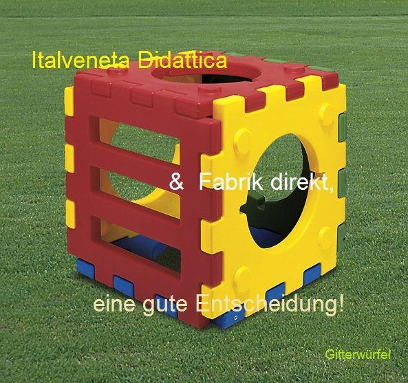 Cubic Toy Gitterwürfel von der bekannten italienischen Firma Italveneta Diddatica nun auch im Sortiment von Fabrik direkt, ist ein robustes, farbenfrohes und zuverlässiges modulares Spielzeug nach dem Bausteinprinzip, welches aus stabilen und formschönen u.a. geblasenen Kunststoff gefertigt wird. Es kann auf Spielplätzen und in Sporthallen verwendet werden und dank seiner besonderen Struktur auch im Nassbereich von Schwimmbädern.