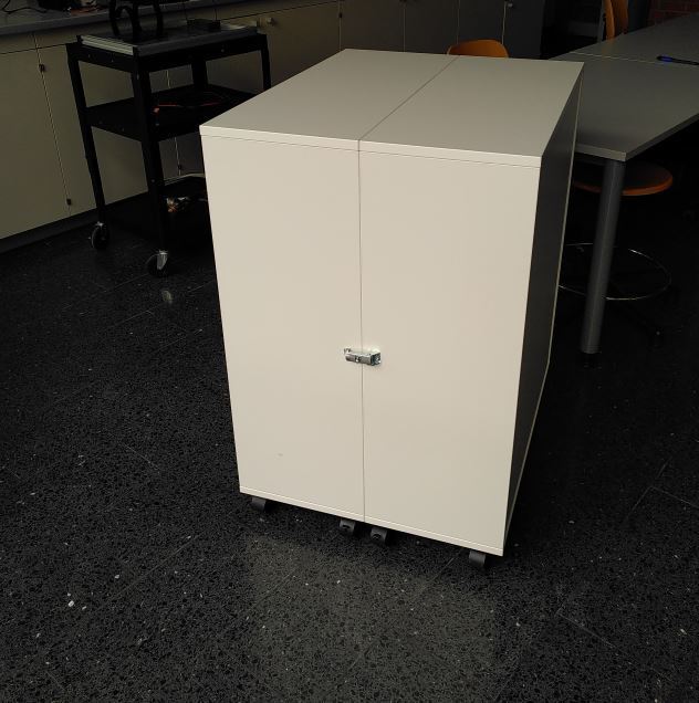 Unser super praktisches, leicht händelbares und fahrbares Doppel-Klappregal abschließbar mit einem Sicherheitsriegelschloss (s. unterhalb das Bild, Vorhängeschloss nicht im Lieferumfang), alle wichtigen Sachen in einem Regal vor neugierigen Blicken geschützt, mit 2x 2 verstellbaren Einlegeböden für viele Einsatzzwecke geeignet. Höhen zwischen den Böden ca. 27cm bei proportionaler Ausrichtung.
