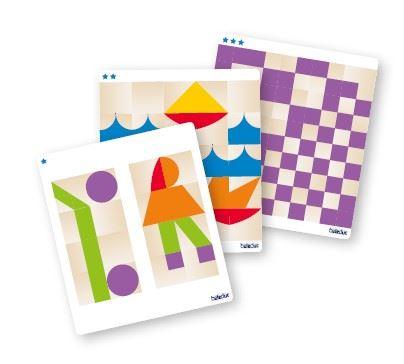 50 Dreiecke in 4 verschiedenen Farben laden dazu ein, hunderte bunter Muster zu legen oder mit den Dreiecken kleine Bauwerke zu bauen.