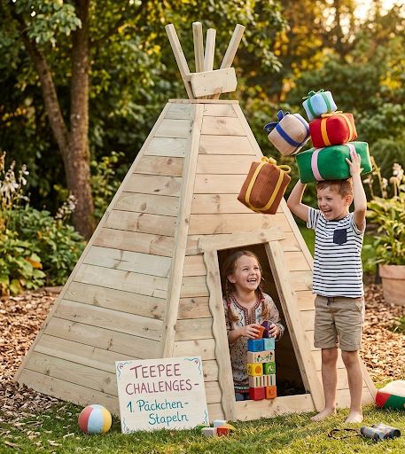 Das Indianerzelt Kleiner Bison ist viereckig und perfekt für Rollenspiele im Garten oder in der Prärie.