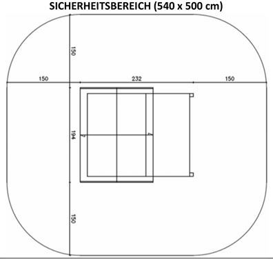 Bitte achten Sie auf einen umlaufenden Sicherheitsabstand von mindestens 1,5m.