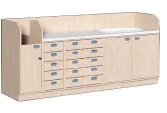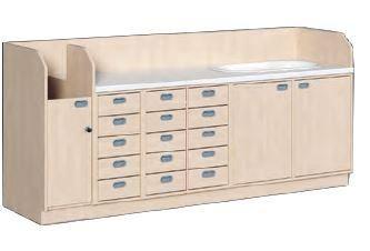 Wickelkommode, 71 cm tief, Wanne rechts, 15 Schübe
