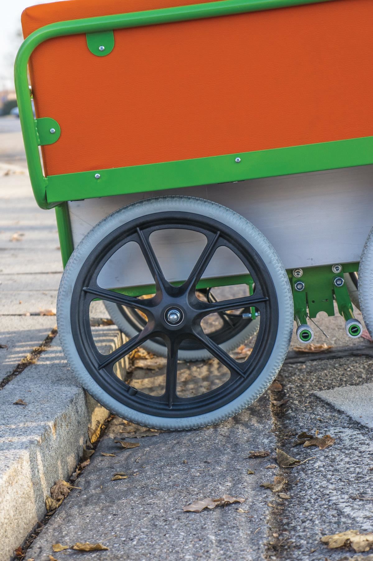 Gewicht: nur 25 kg!Leichtgängige, durchgeschäumte, große Leichtlaufrollen Durchmesser 370 mm, Randsteine können damit sehr leicht überwunden werden